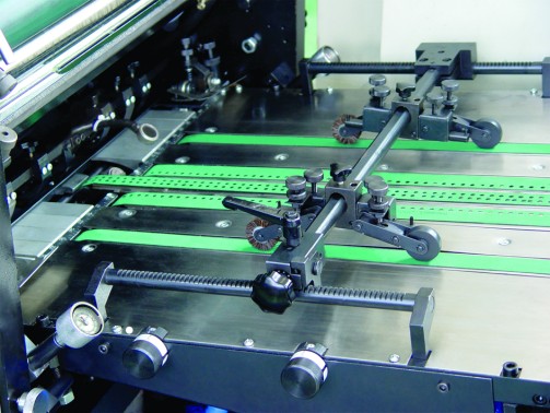 1) Mechanismy pro přepravu papíru, jako je podávací hlava papíru, podtlakový sací stůl pro podávání papíru, přední vodítko a uchopovače papíru, zajišťují, že lis může přepravovat papíry různé tloušťky.