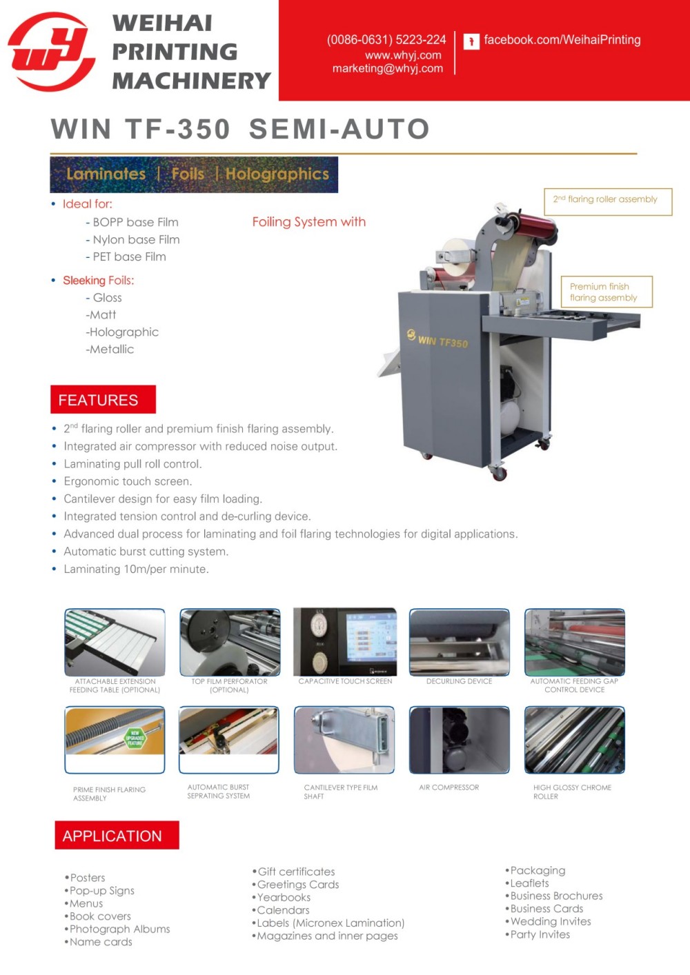 Laminovací a fóliovací stroj s ručním podáváním je zařízení pro ruční podávání papíru integrované s funkcemi laminování a fólie. Vyznačuje se kompaktní konstrukcí, která usnadňuje instalaci a umístění v dílenském prostředí. Tento stroj poskytuje vlastní dekorativní řešení, která umožňují transformaci běžných tiskových materiálů na vysoce kvalitní, vynikající produkty. Je kompatibilní jak s digitálním tiskem na vyžádání, tak s tradičními litografickými výstupy ofsetového tisku. Navíc je vybavena prodlouženým stolem pro podávání papíru, který je speciálně navržen pro zpracování bannerů a dalších extra dlouhých tiskovin.