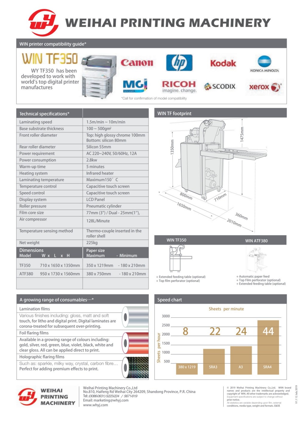 Hmotnost papíru (gsm) 100-500 gsm Ovládání rychlosti Dotyková obrazovka